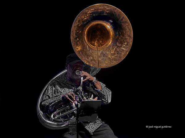 Momento 2: “Adele”, donde Medeski tocó la melódica entrando en un diálogo sostenido con Kirk Joseph. Es una pieza con alma NOLA, corazón soul y cuerpo de brass band. Es la demostración de que Mad Skillet puede ser íntimo sin ser dulzón, y emocional sin ser cursi. Su belleza está en cómo la melódica se apoya en una base sonora tan corpórea y contundente como la del pesado metal, una dualidad que difícilmente podría lograrse sin esta combinación de músicos. En el disco no se llega a apreciar la contundencia del diálogo sostenido que nos ofrecieron en directo. Fue impresionante. El trabajo físico de Joseph y el agotamiento se pudo ver claramente tocando y portando el instrumento durante más de hora y media.